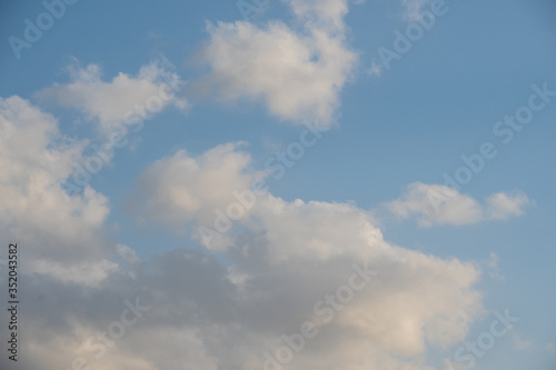 Fototapeta premium Sunny cloudscape blue sky with white cumulus clouds cloudscape. Beautiful...