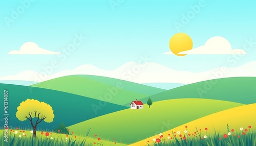 © Mishal, Fototapeta premium Sunny Countryside - Bright and Cheerful Vector Landscape