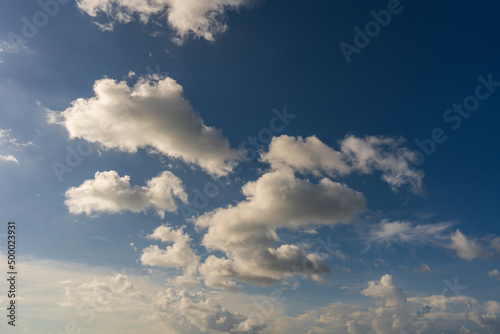 © OlegD, Obraz premium Sunny day, blue sky and white clouds