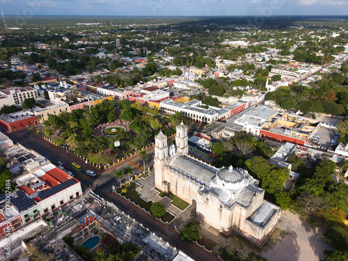 Fototapeta premium Sunny day, impressive architecture and park, aerial view