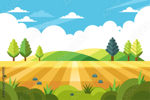 Fototapeta premium Sunny Day Landscape with Fields and Trees