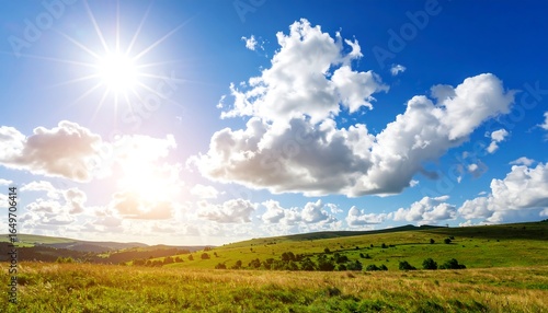 Obraz premium Sunny day landscape with hills and clouds.
