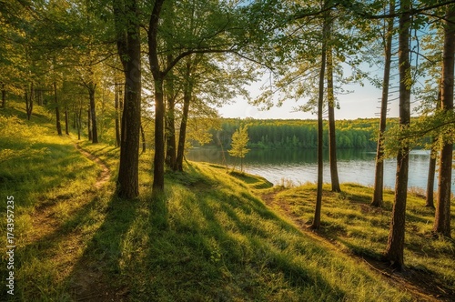 © Giovanni, Obraz premium Sunny Day Walks Through Forest Trails