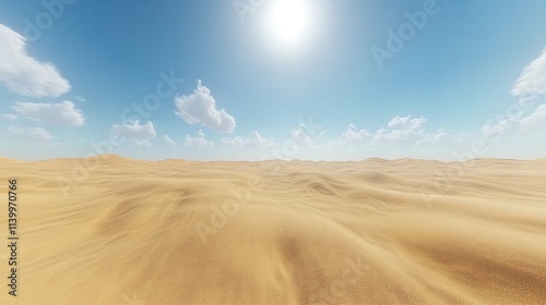 © Bejo Studio, Naklejka premium Sunny desert landscape with sand dunes and blue sky.