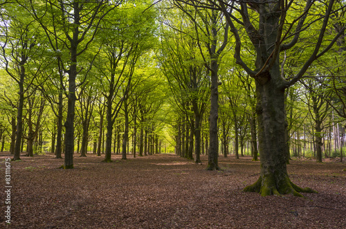 Fototapeta premium Sunny foliage of a beech forest in spring