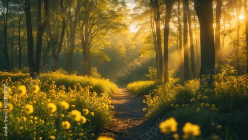 © The 2R Artificiality, Obraz premium Sunny forest at dawn.