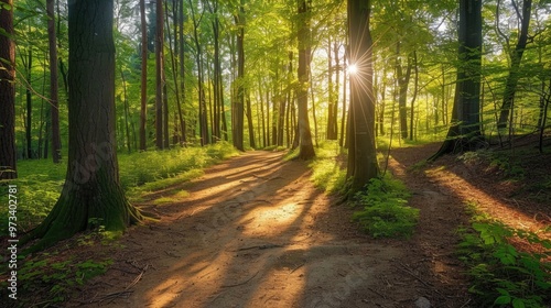 Obraz premium Sunny forest path in spring