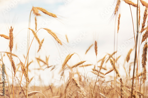 © Mariusz Blach, Fototapeta premium Sunny golden wheat field, ears of wheat close up background