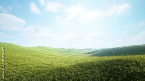 Fototapeta premium Sunny green hills, idyllic landscape, bright sky, pastoral scene, nature background