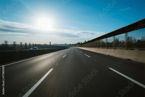 © Adobe Contributor, Fototapeta premium Sunny highway with clear blue sky and empty road ahead