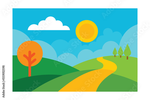 © Gonush, Obraz premium Sunny Hills, Winding Road, Scenic Landscape Illustration