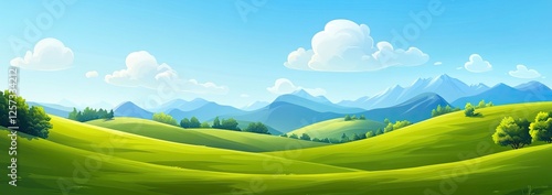 © afterfast, Obraz premium Sunny Hillscape with Mountains