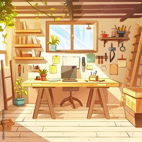 © RaphaMMS, Obraz premium Sunny Home Office with Plants, Generative AI