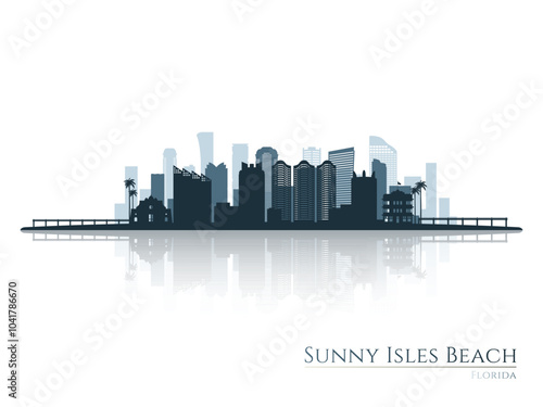 Naklejka premium Sunny Isles Beach skyline silhouette with reflection. Landscape Sunny Isles Beach, Florida. Vector illustration.