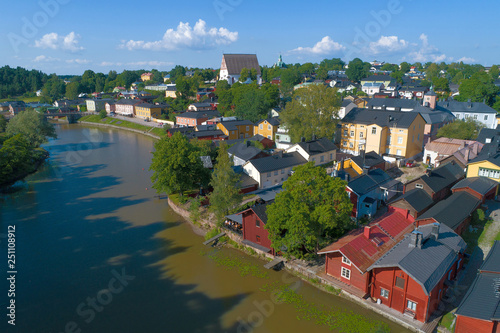 Obraz premium Sunny July day over the Porvoonjoki River (filming from a quadcopter). Old Porvoo, Finland