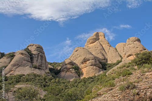 Fototapeta premium Sunny karst mountain peaks in Montserrat., Catalonia, Spain
