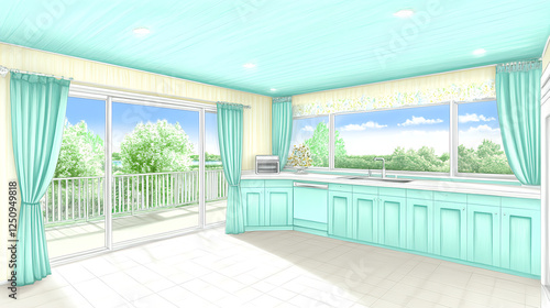 © HiSea, Fototapeta premium Sunny kitchen interior design modern home visual art bright environment spacious view aesthetic concepts for inspiration