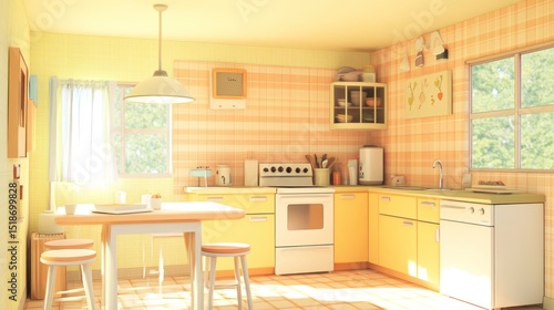 © ddwi, Fototapeta premium Sunny kitchen interior design with pastel colors.