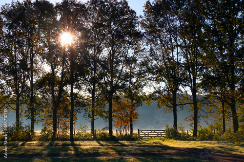 © Picture Partners, Naklejka premium Sunny landscape and wooden fence in autumn in the Netherlands