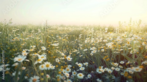 © Iswanto, Obraz premium Sunny Meadow with Daisies.