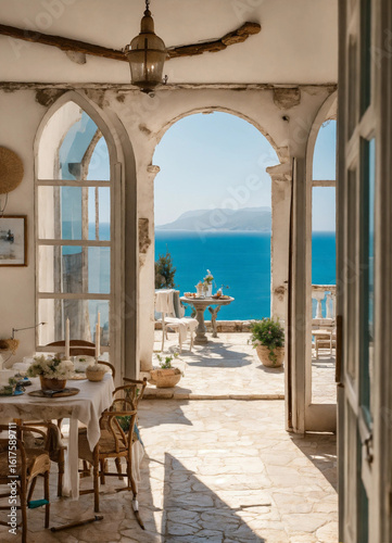 © nisat, Fototapeta premium Sunny Ocean ParadiseVibrant Coastal ColorsBright Blue SeascapeGolden Hour Ocean ViewCloudy Sky Ocean ViewSunset Over the OceanSunrise Coastal SceneDramatic Sky OceanClear Blue Sky and Se
