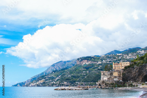 © Mariam, Naklejka premium Sunny Panoramic Landscape View On Maiori, Amalfi Coast, Italy