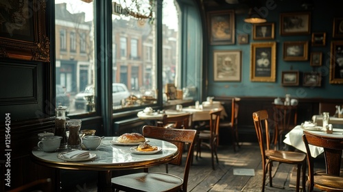 © ALIF JATI KUSUMA, Obraz premium Sunny Parisian cafe breakfast, street view