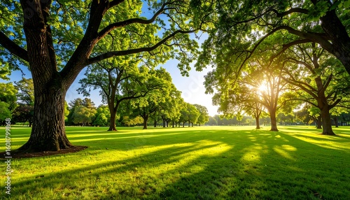 © Bintang, Fototapeta premium Sunny park scene with lush trees