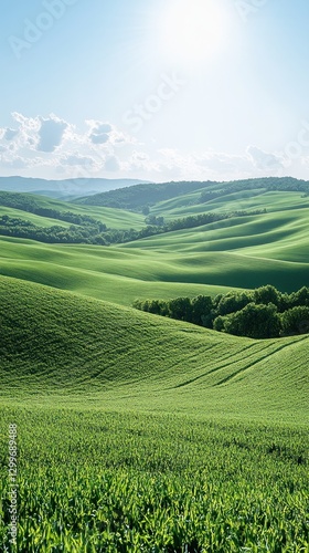 © Lemdah, Fototapeta premium Sunny rolling hills landscape, farmland, nature