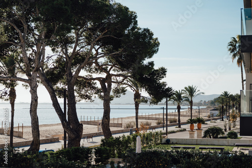 Obraz premium Sunny seaside view from balcony, Port de Pollença, Mallorca