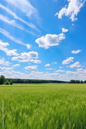 Fototapeta premium Sunny season backdrop: vibrant summer background perfect for banner and copy space, capturing the essence of warm day, blue skies, and blooming nature