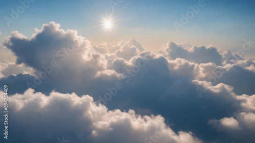 © LooPanda-Pictures, Obraz premium Sunny sky background with fluffy white clouds