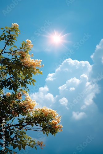 Obraz premium Sunny Sky with Blossoms and Clouds