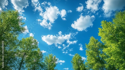 Obraz premium Sunny Sky with Green Trees