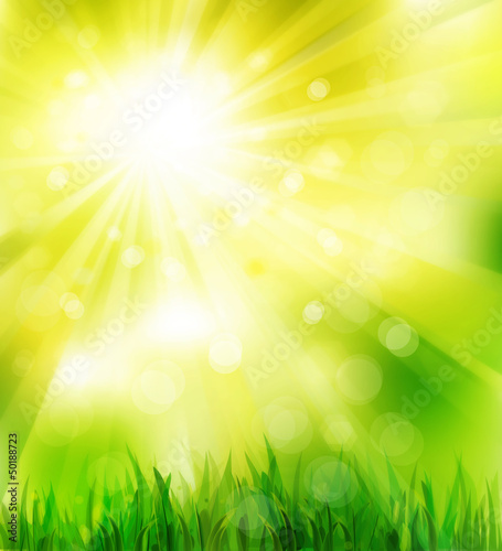 Obraz premium Sunny spring background with green grass.
