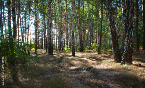 Obraz premium Sunny Summer birch forest.