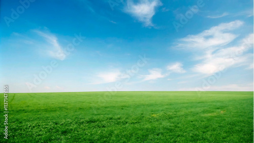 © AI NEX GEN, Fototapeta premium Sunny summer day with a green field and blue sky