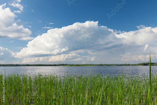 © evgeeenius, Fototapeta premium Sunny summer landscape with river and field