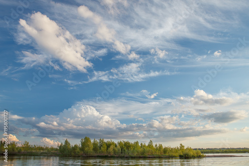 © evgeeenius, Fototapeta premium Sunny summer landscape with river and field