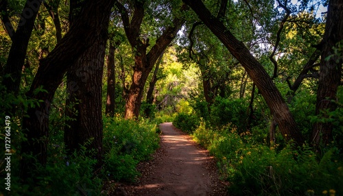 Fototapeta premium Sunny trail through a leafy forest