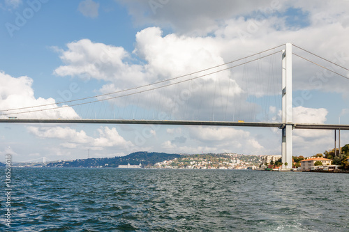 Obraz premium Sunny view from pleasure boat to Bosphorus, Istanbul, Turkey.