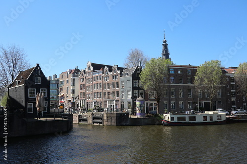 © Edwin Butter, Naklejka premium sunny view of buildings over water canal in Amsterdam