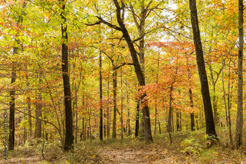 © Kit Leong, Fototapeta premium Sunny view of the beautiful fall color of Hobbs State Park-Conservation Area