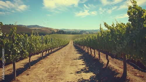 Fototapeta premium 90. **Sunny vineyard landscape with ripe grapes ready for harvest in California