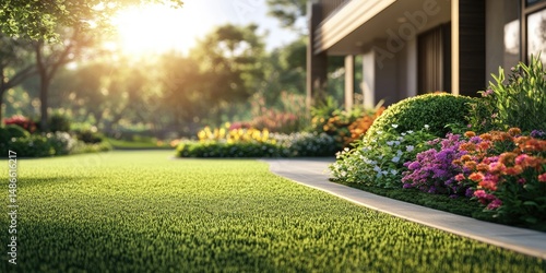 © Lemon, Obraz premium Sunny, Well-Maintained Backyard Oasis