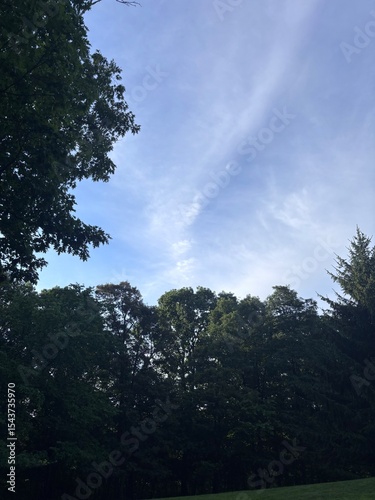 © N.F. Lens, Fototapeta premium Sunny Woodland Landscape with Clear Blue Sky and Lush Green Trees