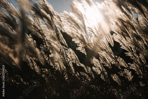 Obraz premium Sunrays fall through wheat. Sunsest in autumn