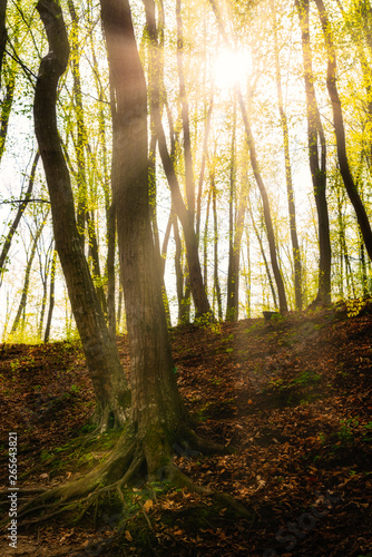 Fototapeta premium Sunrays in the green forest