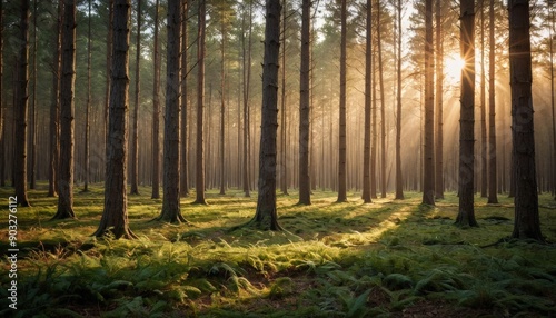 © Narongsag, Fototapeta premium Sunrays through the forest.