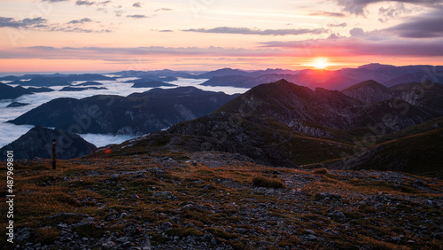 Obraz premium Sunrise above the clouds in Austrian mountains